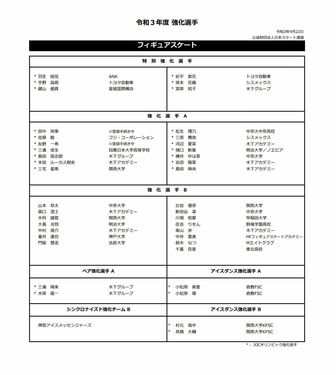 強化選手