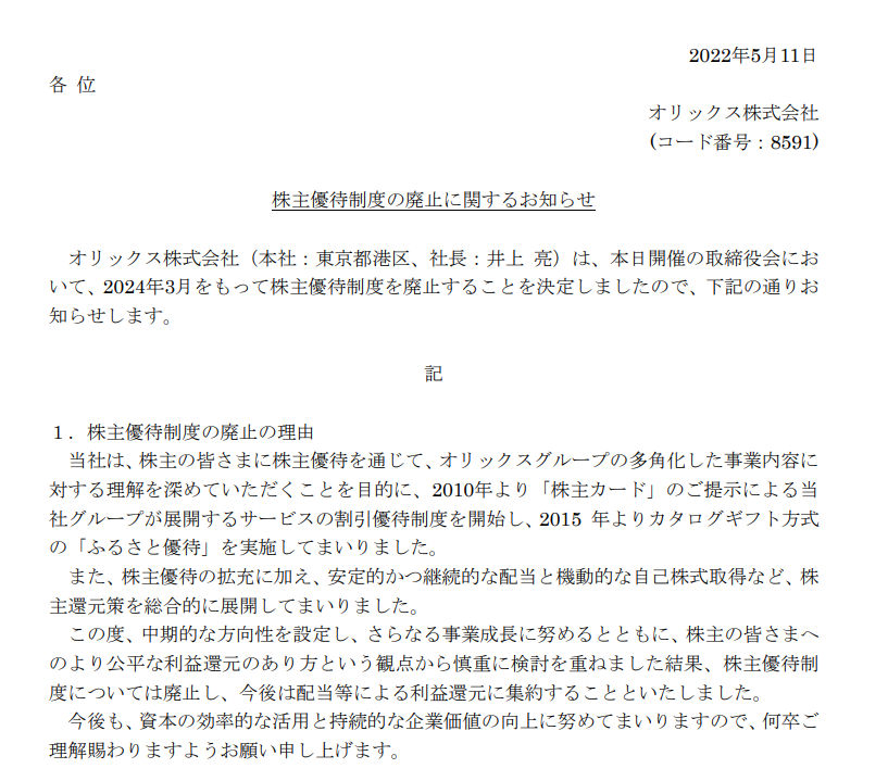優待廃止